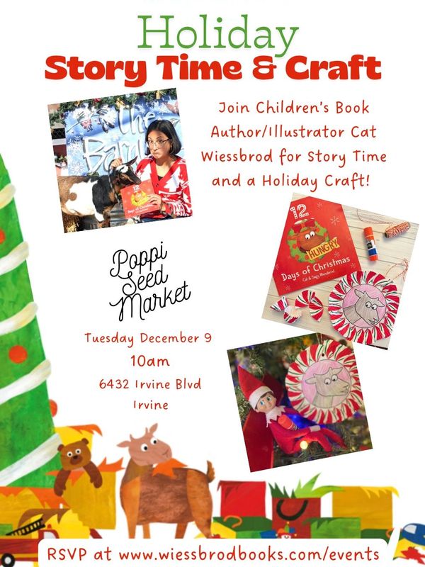 Join children's book author/illustrator Cat Wiessbrod for story time and a Holiday Craft at Poppi Seed Market in Irvine!