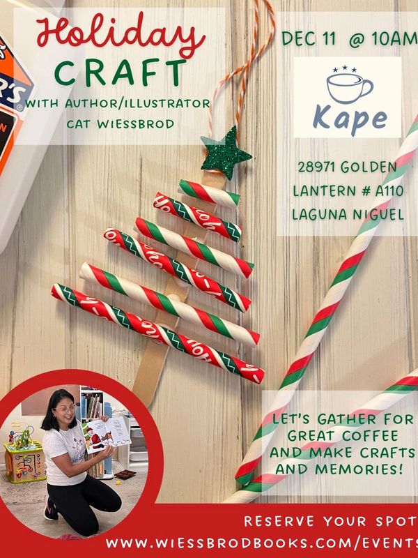 Join children's book author/illustrator Cat Wiessbrod for craft time at Kape in Laguna Niguel! Enjoy their coffee and treats while the littles are entertained with a fun craft to take home!