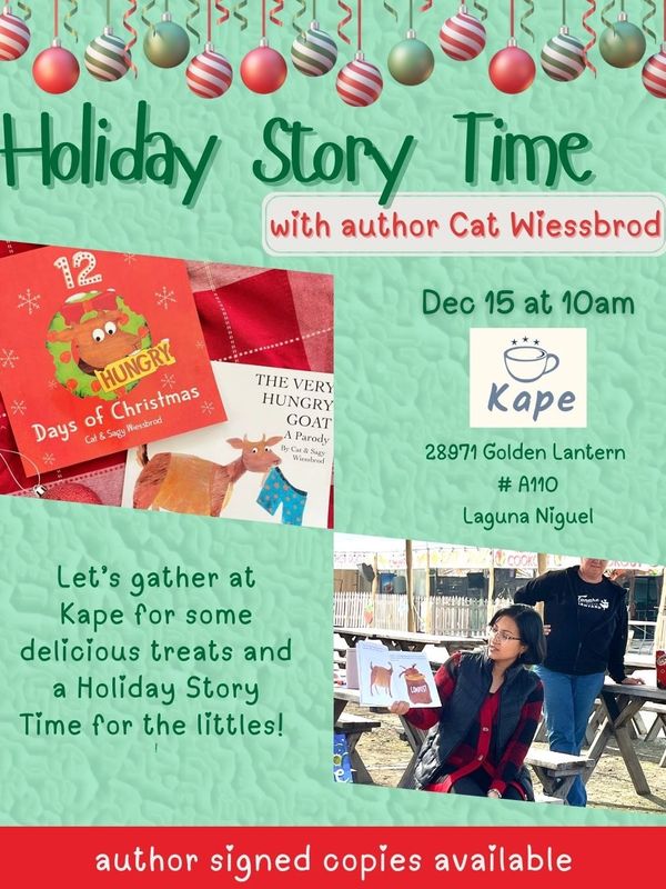 Join children's book author/illustrator Cat Wiessbrod for story time at Kape in Laguna Niguel! Enjoy their coffee and treats while the littles are entertained with Story Time!